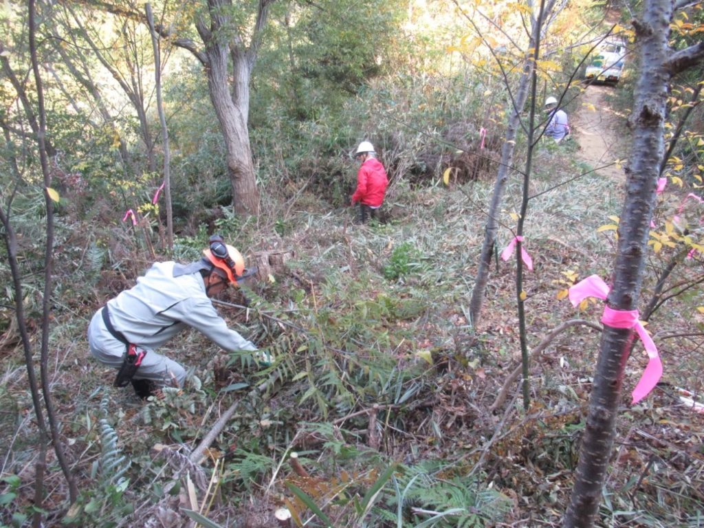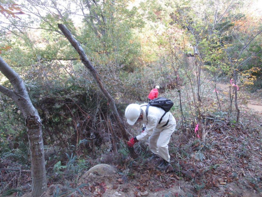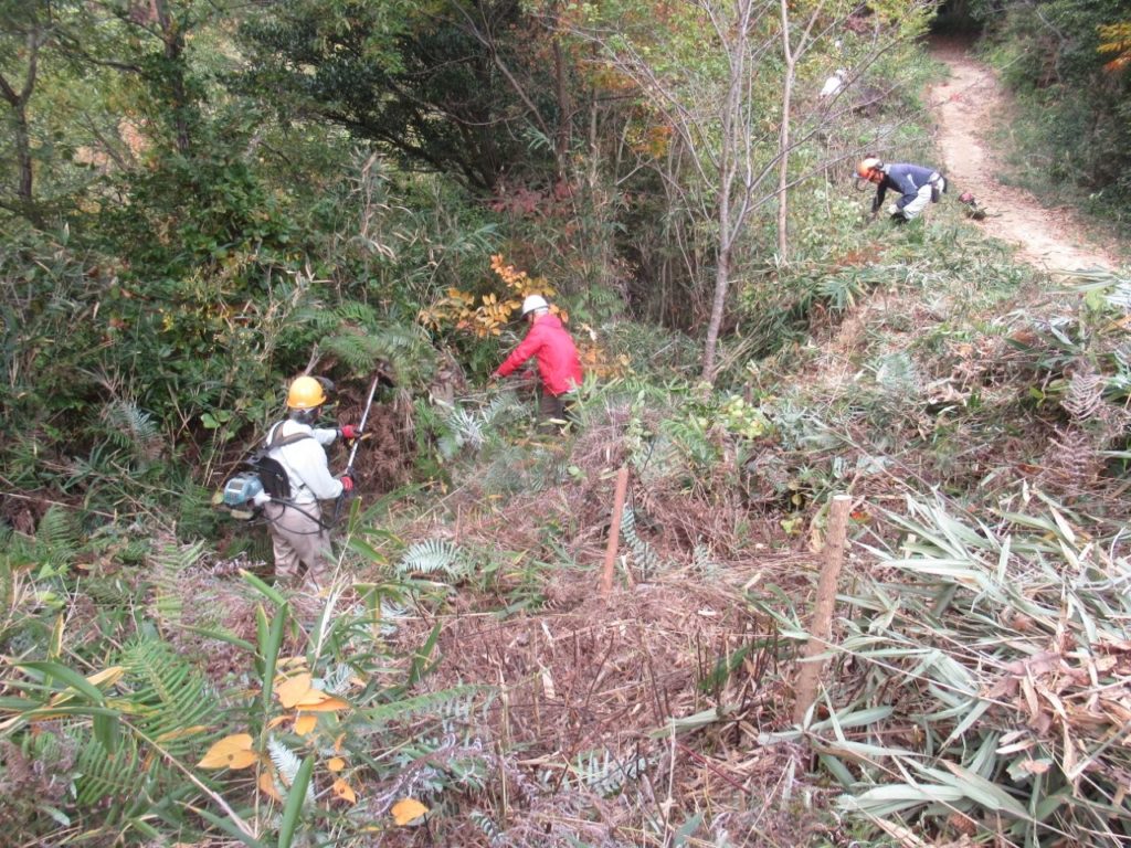 未分類2026.01.14地番8 椿谷上 ポスト シェア はてブ 送る Pocket 2025年(令和7年)11月20日(木) 参加者6名 本日は緩やかコース入口からテレビアンテナ跡地(最終地点)まで整備ができた。。 本日も笹やシダが多く、草刈り機が活躍した。 場所によっては垂直な谷があり、谷の奥に進めないところもある。 地番8は4回で薪小屋からアンテナ跡地まで道に沿って整備した。 資源活用として薪用材の伐採は必要。