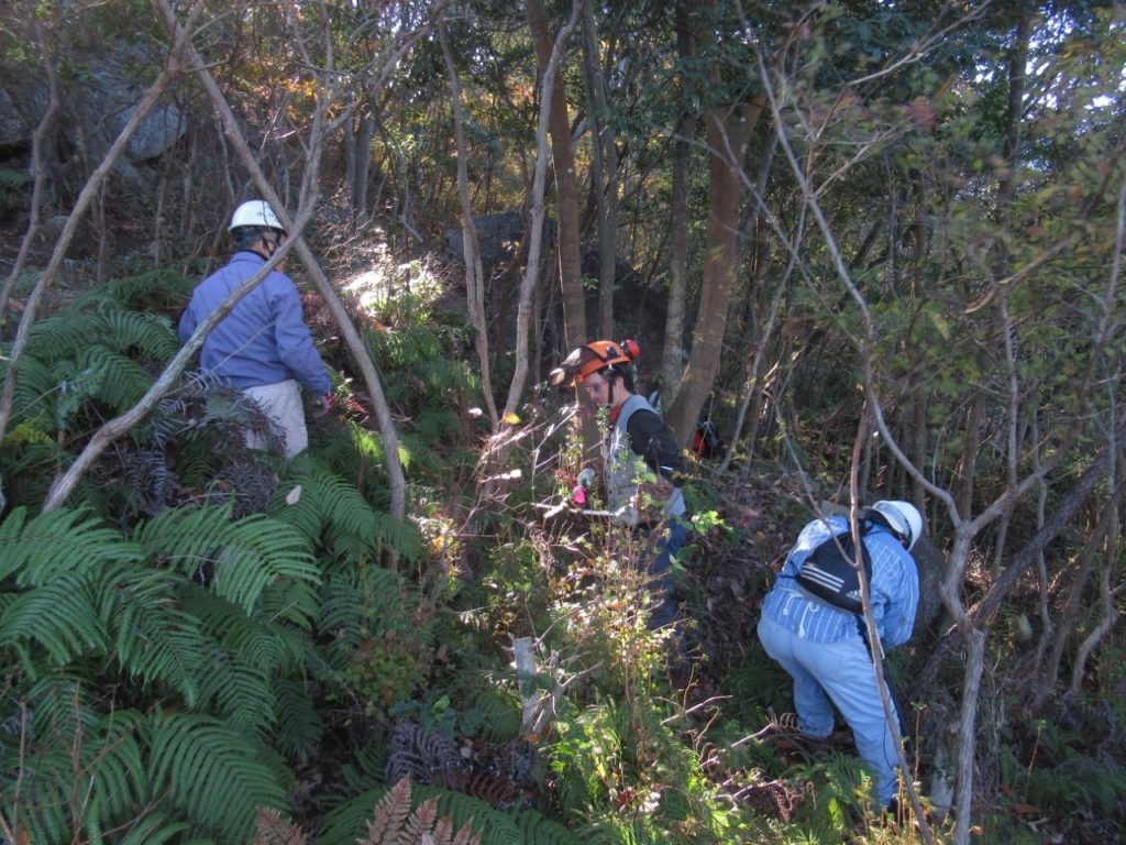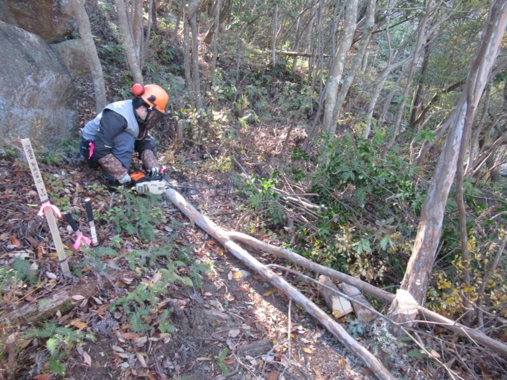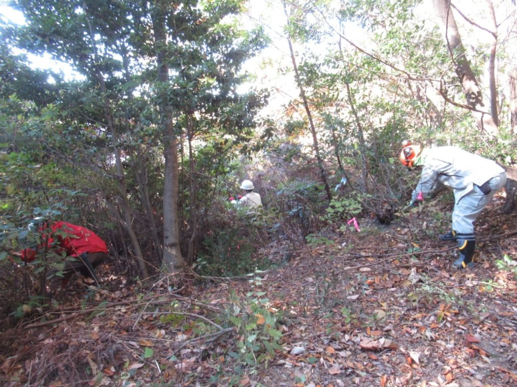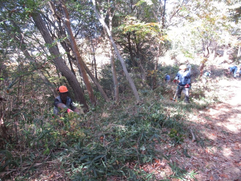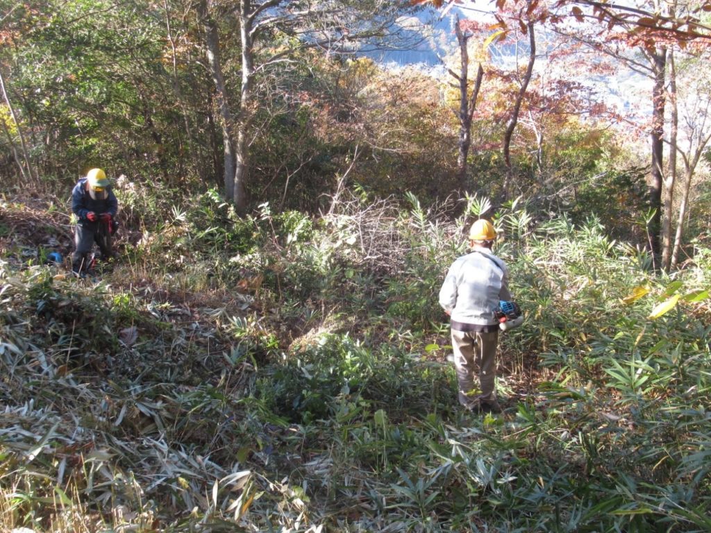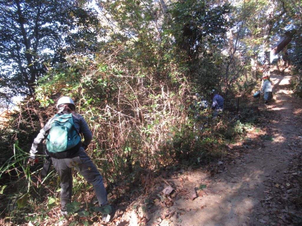 未分類2026.01.14地番8椿谷上 ポスト シェア はてブ 送る Pocket 2025年(令和7年)11月29日(土) 参加者11名 本日は5回目の地番8の作業を実施。 高圧線の鉄塔付近まで進み、1年目の作業は完成した。 登山道谷側は大変明るくなった。資源の薪材も作った。 地番8の作業後は地番2の鬼が城山周辺の作業に移った。 この地は全体の小木を伐採を行った。資源の薪材も作って搬出した。