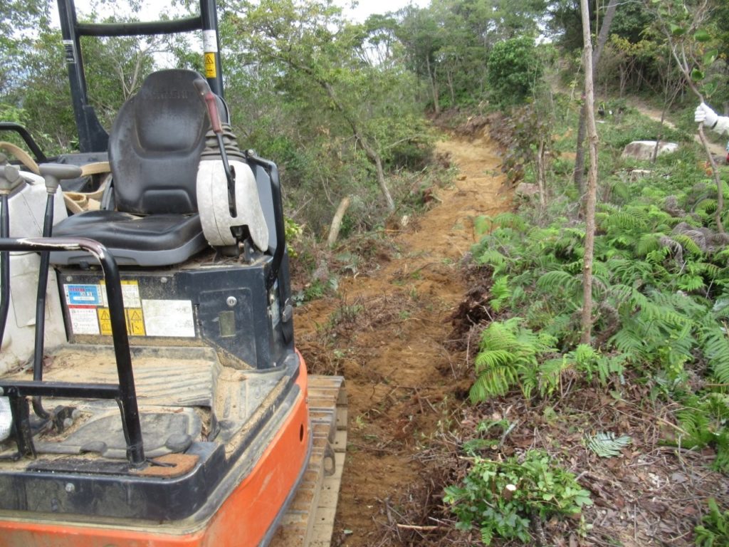本日で約150mの道のりが完成。重機で道をならすなどの整備で終了する。