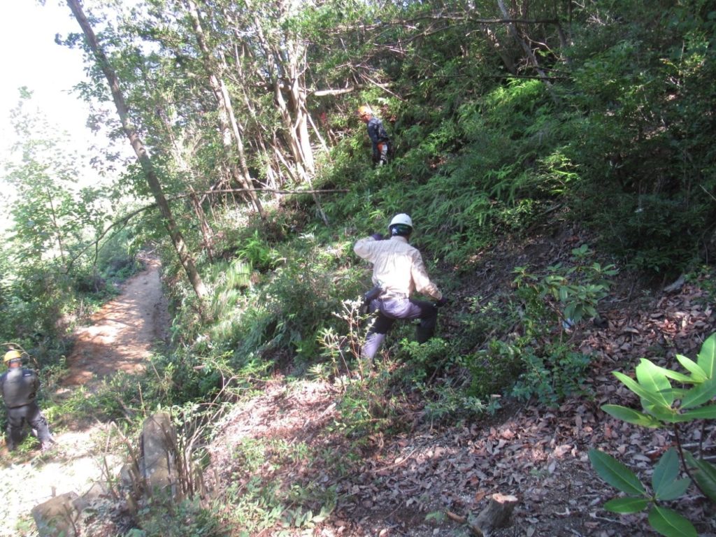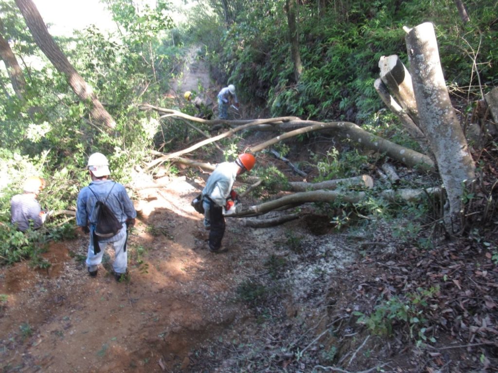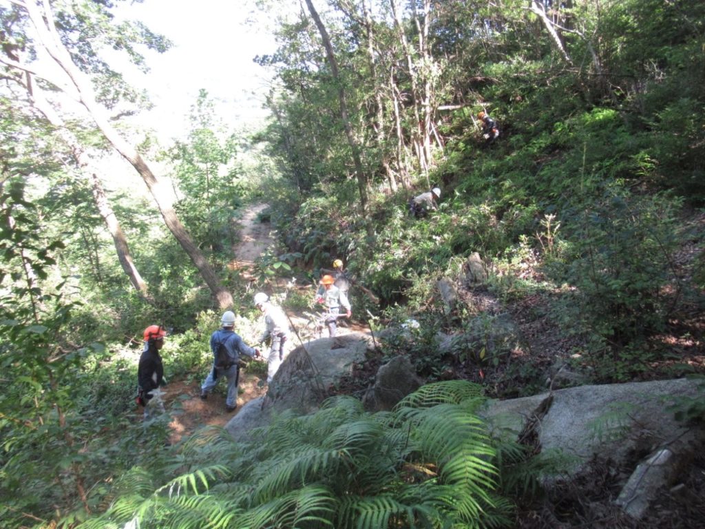 本日はルートに沿ってシダの刈り取り、立ち木の伐採を実施した。