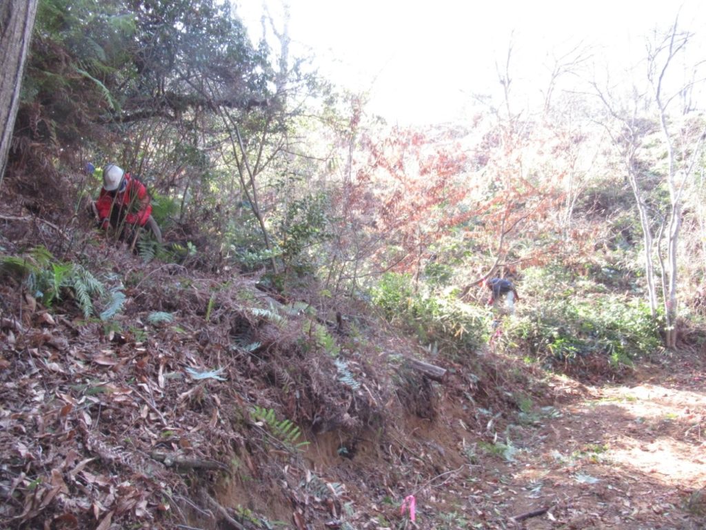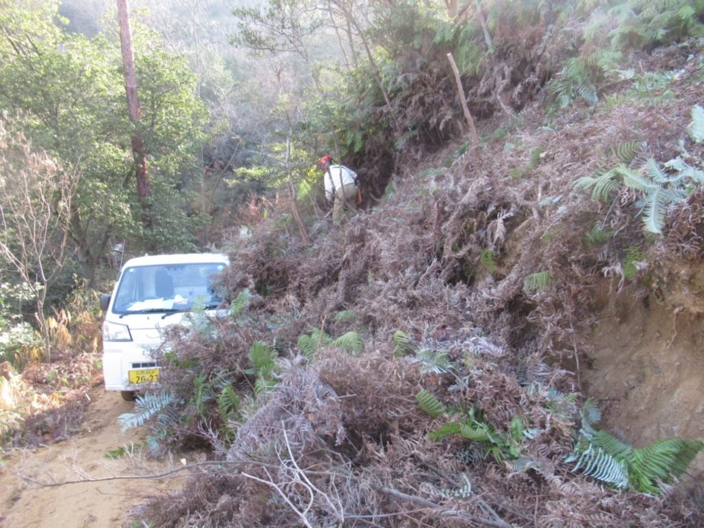 未分類2026.02.21地番8 椿谷上 ポスト シェア はてブ 送る Pocket 2026年2月14日(土) 地番8 椿谷上 参加者9名 本日は地番8の南側(ヤマボウシの周辺)を中心に整備を行った。 この地も背の高いシダに覆われていた。 仮払い機4台がフル稼働。 シダが一部残ったが、ほぼ刈り取って明るい山容になった。